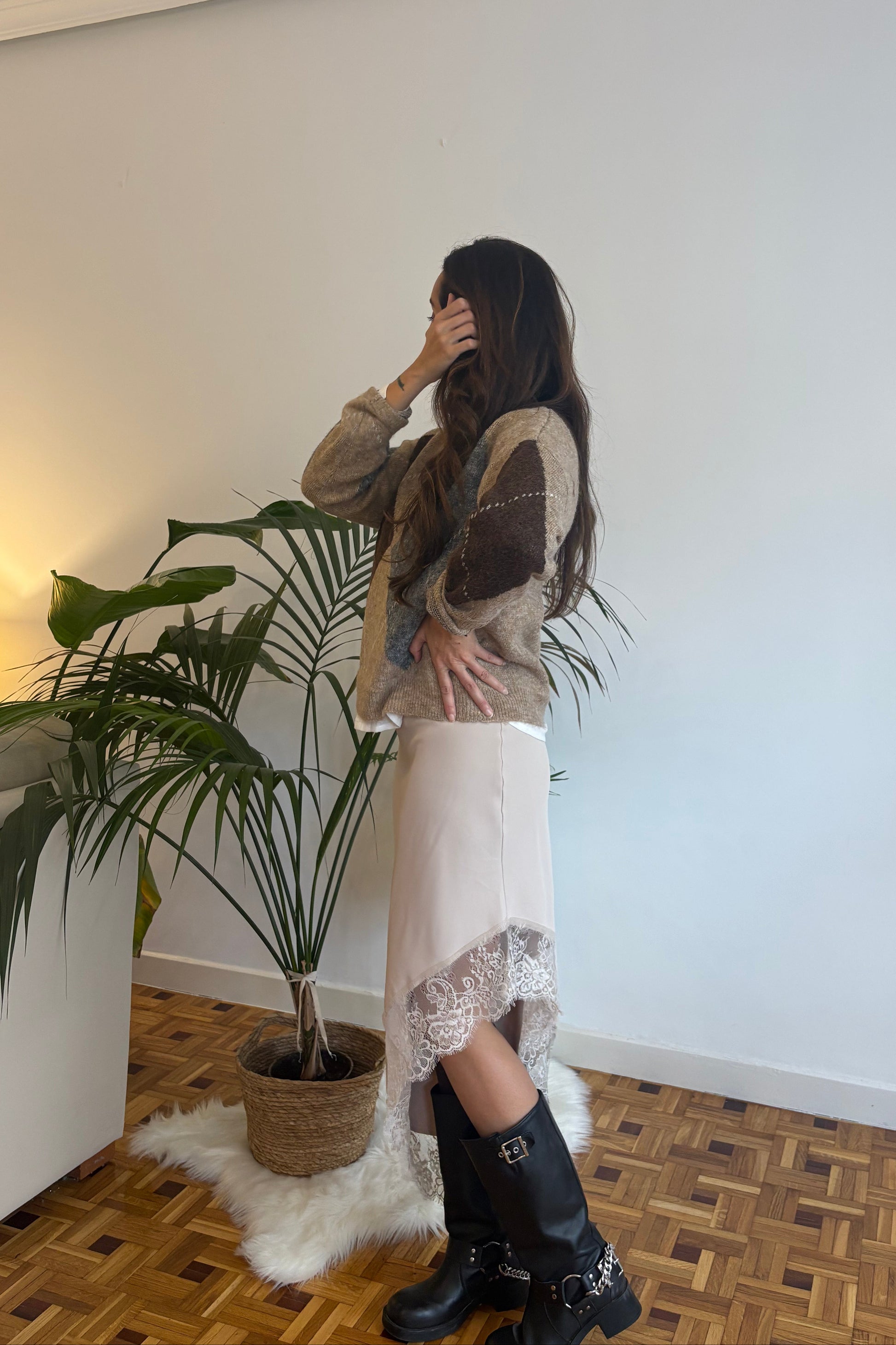 FALDA ASIMÉTRICA ENCAJE CRUDO